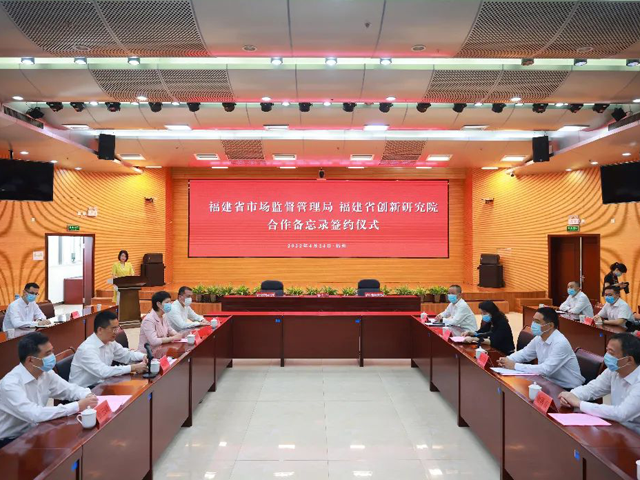 2022年4月24日,省市場(chǎng)監(jiān)管局與省創(chuàng)新研究院順利舉辦合作簽約儀式。省市場(chǎng)監(jiān)管局黨組書記、局長黃培惠,省創(chuàng)新研究院黨委書記、院長林巋然出席簽約儀式并分別致辭。省市場(chǎng)監(jiān)管局領(lǐng)導(dǎo)謝再春、劉征穎,省創(chuàng)新研究院領(lǐng)導(dǎo)潘繡文、張?jiān)品逡约半p方相關(guān)部門負(fù)責(zé)人參加了簽約儀式。