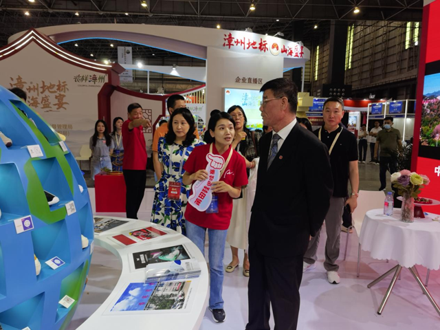 漳州館圍繞“漳州地標 山海盛宴”主題設計,集漳州傳統文化元素與現代設計于一體,展示漳州優秀地理標志產品及高知名度商標品牌。展館內,花卉、水果等地理標志產品豐富、品類齊全;片仔癀、青蛙王子、小浣熊等本土知名商標不勝列舉;“花樣漳州”區域公共品牌精彩亮相,充分展現近年來漳州商標品牌的發展成果,漳州館成為觀展人員的熱門打卡點之一。