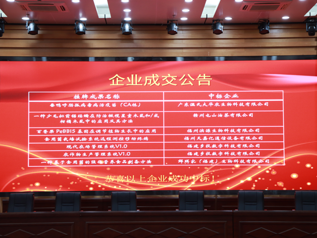 競價會上,本次掛牌競價的7項成果全部拍出,掛牌價275萬元,成交價432萬元,溢價157萬元。掛牌的7項成果涉及獸藥疫苗、專利、軟件著作權等領域,吸引了來自全國多地農業企業注冊參加競價,其中“番鴨呼腸孤病毒病活疫苗(CA株)”經過多輪競價,被廣東溫氏大華農生物科技有限公司以305萬元的高價拍得,成為全場增值最高的科技成果。現場還舉行了科技成果轉化簽約儀式,簽約及競拍成交總金額1320萬元。
