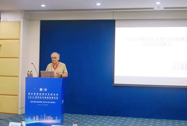 臺灣嘉賓、臺灣環境檢驗測定商業同業公會理事長余建中先生作《臺灣的環境類標準方法與運用》匯報,詳細介紹臺灣在環境類標準制定、實施及運用方面的經驗和成果。