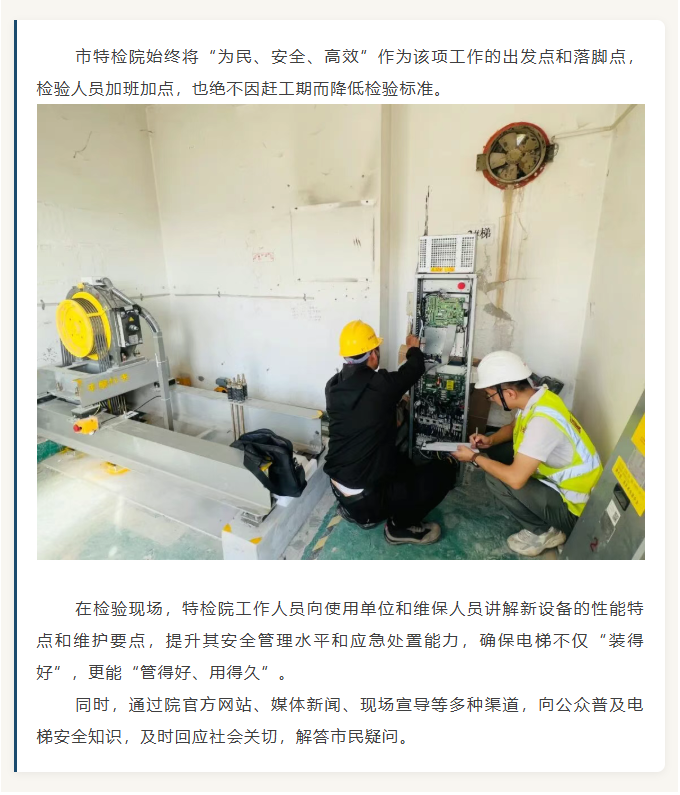 近千臺國補更新電梯經檢驗已投用