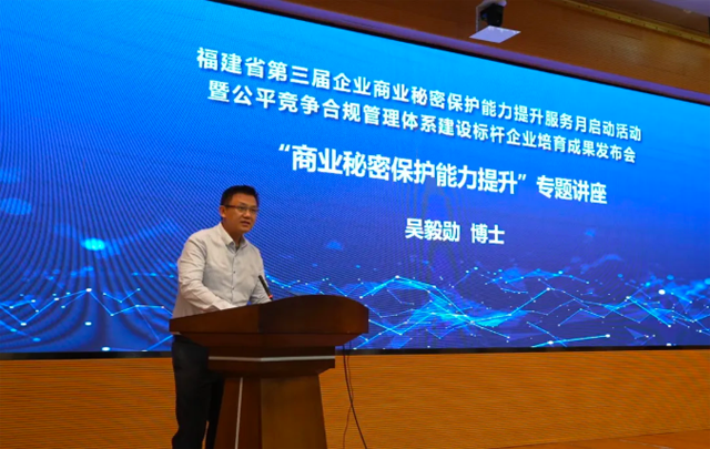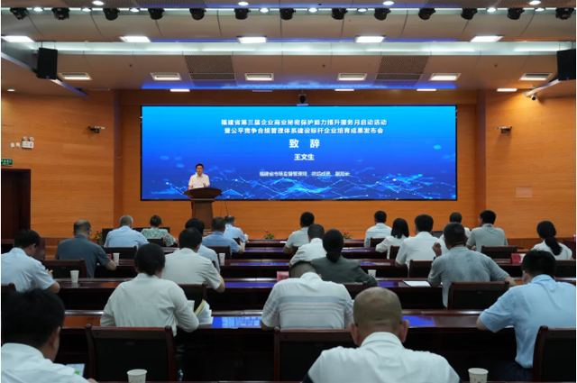 為深入貫徹落實黨的二十屆三中全會提出的“構建商業(yè)秘密保護制度”重要改革任務,有力推動我省企業(yè)提升商業(yè)秘密保護意識和能力,6月9日,省市場監(jiān)管局舉辦以“強化商業(yè)秘密保護 共建公平競爭生態(tài)”為主題的福建省第三屆企業(yè)商業(yè)秘密保護能力提升服務月啟動活動暨公平競爭合規(guī)管理體系建設標桿企業(yè)培育成果發(fā)布會。省市場監(jiān)管局黨組成員、副局長王文生出席活動并致辭。來自福建省各地市市場監(jiān)管局分管領導、試點企業(yè)代表及相關機構代表共80余位嘉賓參會。
