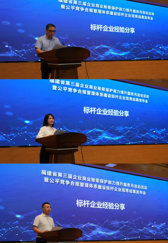 在標桿分享環(huán)節(jié),天辰耀隆分享了打造“采購-生產-質控”全流程合規(guī)嵌入體系;廈門松霖科技分享了創(chuàng)新“全員參與、全程監(jiān)督”的內部舉報機制,片仔癀藥業(yè)分享了構建“決策層統(tǒng)籌、管理層推進、執(zhí)行層落地”的三級治理架構。三組實踐從治理架構、監(jiān)督機制、流程管控三個維度,勾勒出商業(yè)秘密保護與公平競爭合規(guī)建設的“三維坐標系”,為不同行業(yè)、不同規(guī)模的企業(yè)提供了量體裁衣的參考范本。