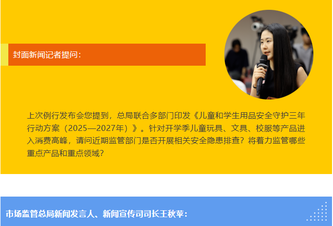 總之,我們將持續筑牢兒童和學生用品安全防線,讓孩子安心、家長放心、社會暖心。謝謝!