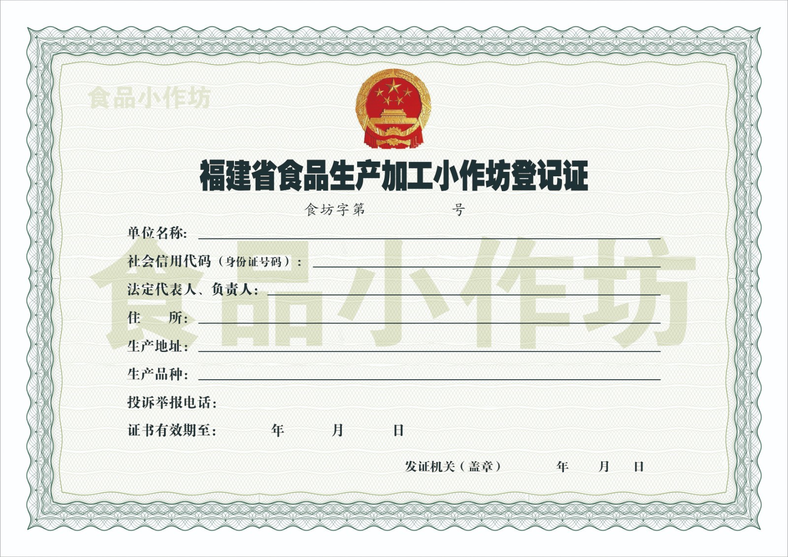 14.福建省食品生產加工小作坊登記證