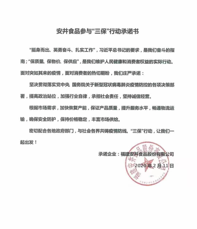 安井食品參與“三保”行動(dòng)承諾書