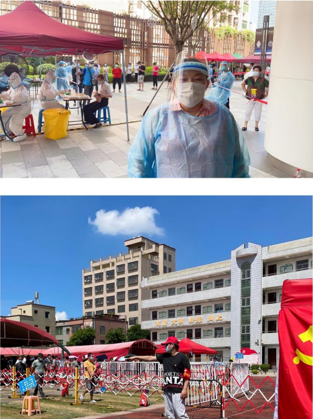 在高溫炎熱的天氣里,汗流浹背的黨員志愿者盡管已經(jīng)被層層防護(hù)工具悶得喘不過(guò)氣,護(hù)目鏡前的霧氣與汗水將他們包裹得無(wú)法辨認(rèn)彼此,大家依舊熱情不減,細(xì)心工作,耐心引導(dǎo),連續(xù)奮戰(zhàn)近四個(gè)小時(shí),以實(shí)際行動(dòng)助力有序、快速推進(jìn)社區(qū)核酸檢測(cè)工作。