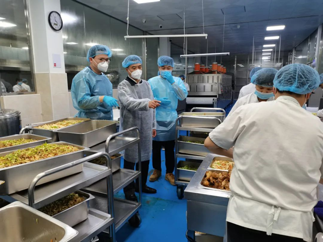 在泉州康禾餐飲管理有限公司,黃培惠一行深入廠區車間實地檢查,詳細了解企業在食品安全、疫情防控等管理上的具體措施,現場囑咐企業負責人,要彰顯社會責任,繃緊食品安全這根弦,以“四個最嚴”的要求做好涉疫場所和相關人員的供餐工作;要克服疫情期間人員緊張、物資緊缺的現實困難,把“保供應、保安全、保民生、保穩定”作為企業當前重要任務,把提高集中供餐的質量安全水平擺在更加重要的位置。并要求屬地市場監管部門要嚴格履行監管職責,督促企業嚴格落實主體責任,加大檢查監督頻率,確保涉疫場所供餐安全。