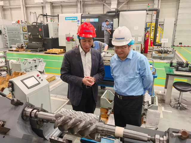 在長樂區福建雪人股份有限公司,劉先義副局長參觀了生產車間,在涉氫容器制造區與技術人員進行了深入交流,對公司在涉氫設備方面取得的技術進步給予了充分肯定。在座談會上,他要求,雪人公司要守好生產安全底線,持續保持特種設備制造資源條件。他希望,雪人公司繼續加強質量管理,提升質量標準,強化創新驅動,加快轉型升級,同時積極申報中國質量獎。