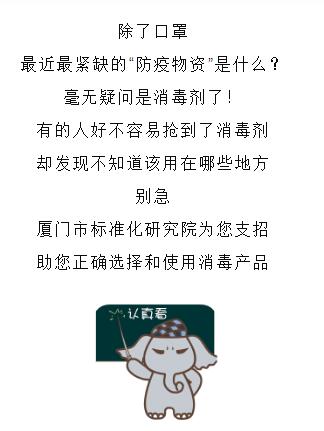 近日,廈門市標準化研究院針對公眾關注的新型冠狀病毒有較好滅活作用的二氧化氯消毒劑、醇類消毒劑、過氧乙酸消毒劑、含氯消毒劑等4類產品衛生標準的應用范圍、使用方法、貯存和注意事項進行了解讀。