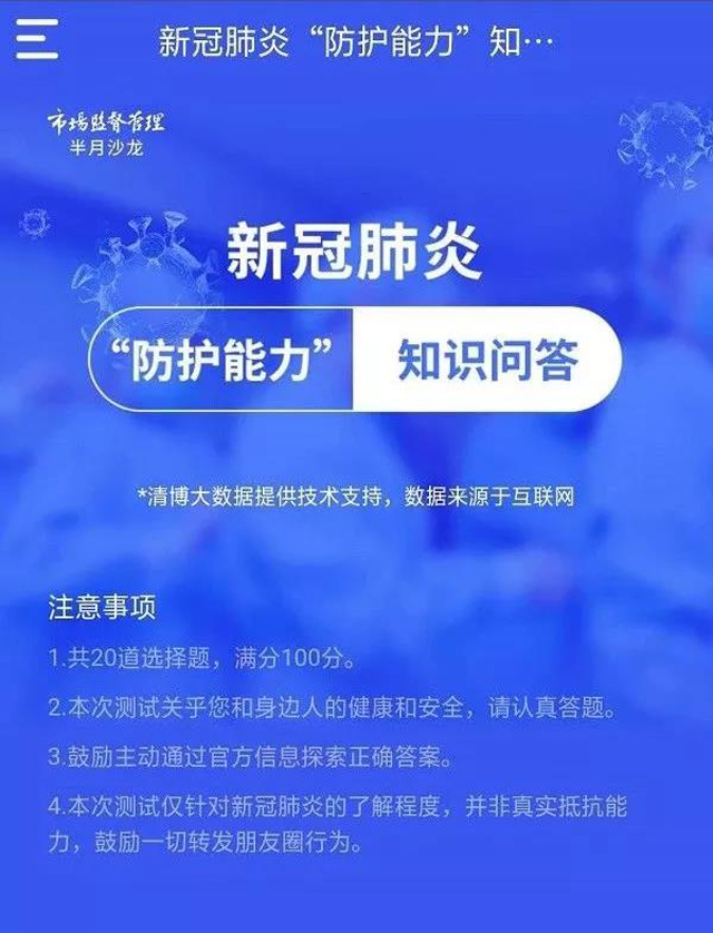 “防疫知識問答”幫助用戶對自身防護知識進行自測。當前,廣泛傳播的疫情防控“散知識”眾多,有必要及時凝煉、規范、明晰知識點,在眾多疫情防控科普知識中,劃明重點、要點、關鍵點非常重要。該版塊可通過做題的模式,增強群眾對新冠肺炎了解認知及防控知識,滿足群眾和社會對科普知識不斷變化的新需要。