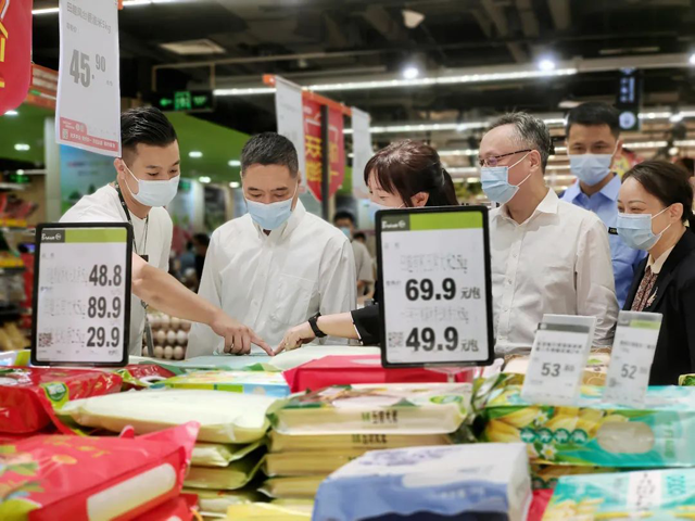 為落實好省委、省政府關于抓緊抓好當前疫情防控各項工作的部署要求及省領導批示精神,加強價格等重點領域監管,10月31日上午,省市場監管局黨組書記、局長黃培惠一行前往鼓樓區永輝超市及晉安區沃爾瑪超市開展民生商品價格情況檢查。福州市市場監管局、晉安區市場監管局有關人員參加檢查。