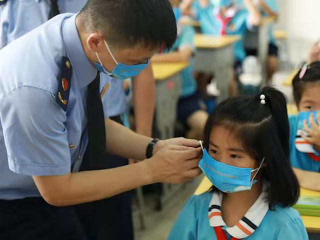 10月11日上午,福州市倉山區金港灣實驗學校三年三班的孩子們收獲頗豐,不僅“富了腦袋”——增長了食品安全科普小知識,也“富了口袋”——收到了市場監管局的“藍衣衛士們”分發的食安創城宣傳口罩、鉛筆盒等小禮物。