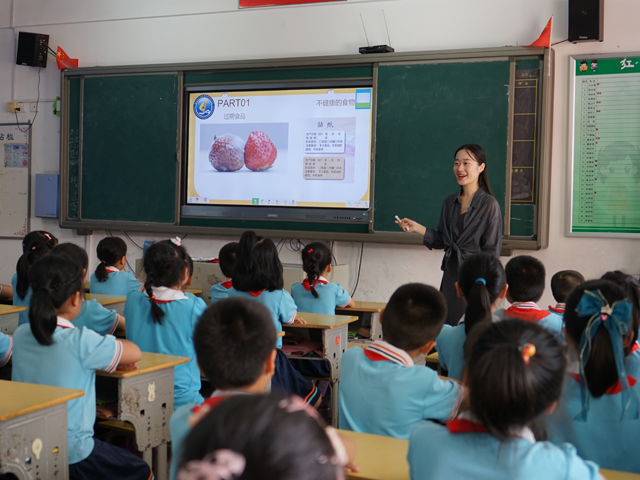 該校老師正向學生講述如何辨別不健康的食品