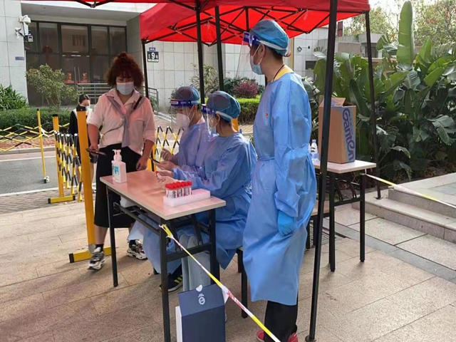 但使龍城飛將在,不教胡馬度陰山。28日,封控區5號樓3梯梯長潘應杰接到協助醫務人員入戶核酸采集的任務。穿上白色防護服,戴好面罩口罩,潘應杰就出發了,到目的地樓棟時,才發現電梯故障。來不及多想,他和醫務人員直接開始爬樓梯。穿著厚重沉悶的防護服,帶著采樣物資,一層層樓爬上去,挨家挨戶去敲門。整整一個上午,穿著防護服,不能喝水,不敢懈怠……,等到采樣完成,“整個人都快散架,但也松了口氣,總算沒耽誤核酸采樣任務?!?/p>