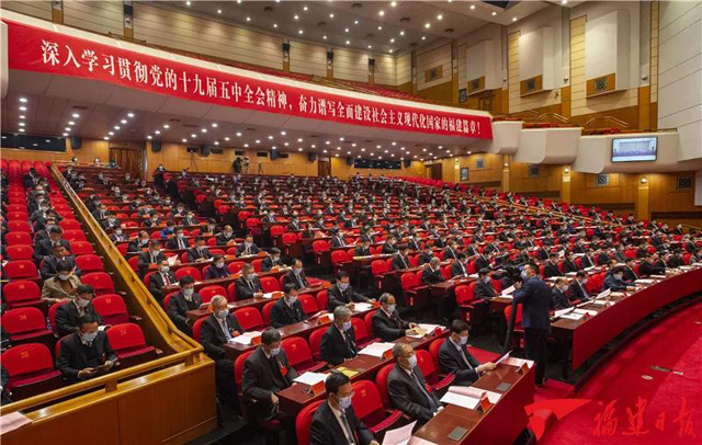 全會深入學習貫徹習近平新時代中國特色社會主義思想和習近平總書記對福建工作重要講話重要指示批示精神,全面貫徹落實黨的十九屆五中全會精神,聽取和討論了尹力受省委常委會委托作的工作報告,審議通過了《中共福建省委關于制定福建省國民經濟和社會發展第十四個五年規劃和二〇三五年遠景目標的建議》