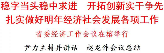 做好明年經(jīng)濟工作要堅持以下原則。一要堅持穩(wěn)字當頭、穩(wěn)中求進。進一步解放思想,以等不得、慢不得的緊迫感和危機感,甩開膀子加油干,千方百計抓發(fā)展,充分用好中央和國家部委出臺的各項穩(wěn)增長措施,及早謀劃出臺我省相關(guān)政策措施,慎重出臺有收縮效應(yīng)的政策措施,力求一季度實現(xiàn)“開門穩(wěn)”“開門紅”,保持全年經(jīng)濟平穩(wěn)較快增長。二要堅持質(zhì)量第一、效益優(yōu)先。完整、準確、全面貫徹新發(fā)展理念,扎實推動高質(zhì)量發(fā)展,把質(zhì)量效益要求貫穿到經(jīng)濟工作的全過程,推動質(zhì)量變革、效率變革、動力變革,全面提高我省經(jīng)濟發(fā)展的創(chuàng)新力和競爭力。三要堅持系統(tǒng)觀念、統(tǒng)籌協(xié)調(diào)。把明年經(jīng)濟工作與“十四五”規(guī)劃、省第十一次黨代會確定的目標任務(wù)統(tǒng)籌銜接好,綜合考慮政治和經(jīng)濟、現(xiàn)實和歷史、物質(zhì)和文化、發(fā)展和安全等多方面因素,把工作做實做細做成。