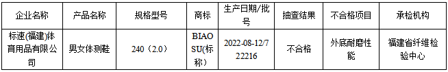 表2 福建省旅游鞋產品質量省級監督抽查結果(不合格)