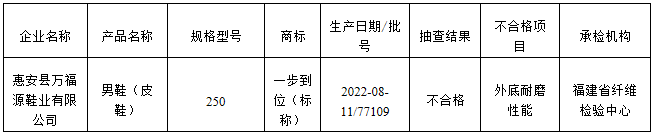 表2 福建省皮鞋產品質量省級監督抽查結果(不合格)